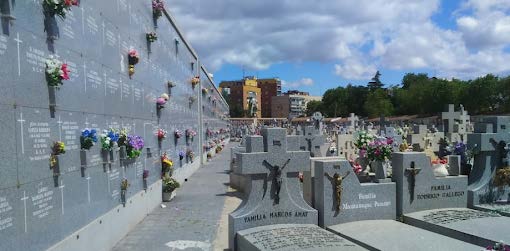 The cemetery is privately owned; it belongs to the municipality of San Sebastián Mártir. It is located in the Vista Alegre-Carabanchel neighbourhood, at 92 Monseñor Oscar Romero Street. It is very well kept and clean. The Campo Santo is of considerable size and irregular shape. As religious funerary art, in its structure, there is a beautiful large sculpture, a mural relief and half a dozen original pantheons.