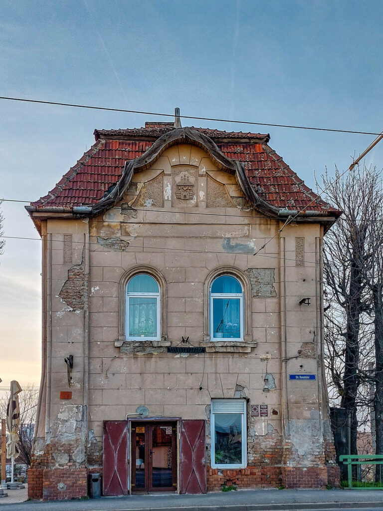 The Customs House, built in the Secession style, still holds the Arad City coat of arms, depicting symbols of the three church towers, the citadel, an arm holding a sword, as well as the Mureș River. Currently, it is open as a cafe, which can be visited during opening hours.